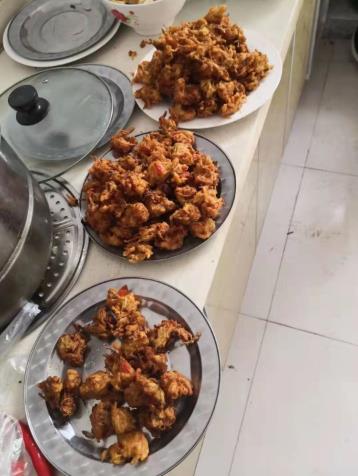 这时候就会有调皮的同事一边大口吃着饭菜,一边还装模作样的卖力讨伐:残忍的刽子手啊,这么可爱的小家伙,谁那么狠心炒的这么可口?庭长,这事儿准又是你干的,伙食费是不是又不够啦,居然舍得对自家养大的“仔”下手。随即响起不断的笑声。