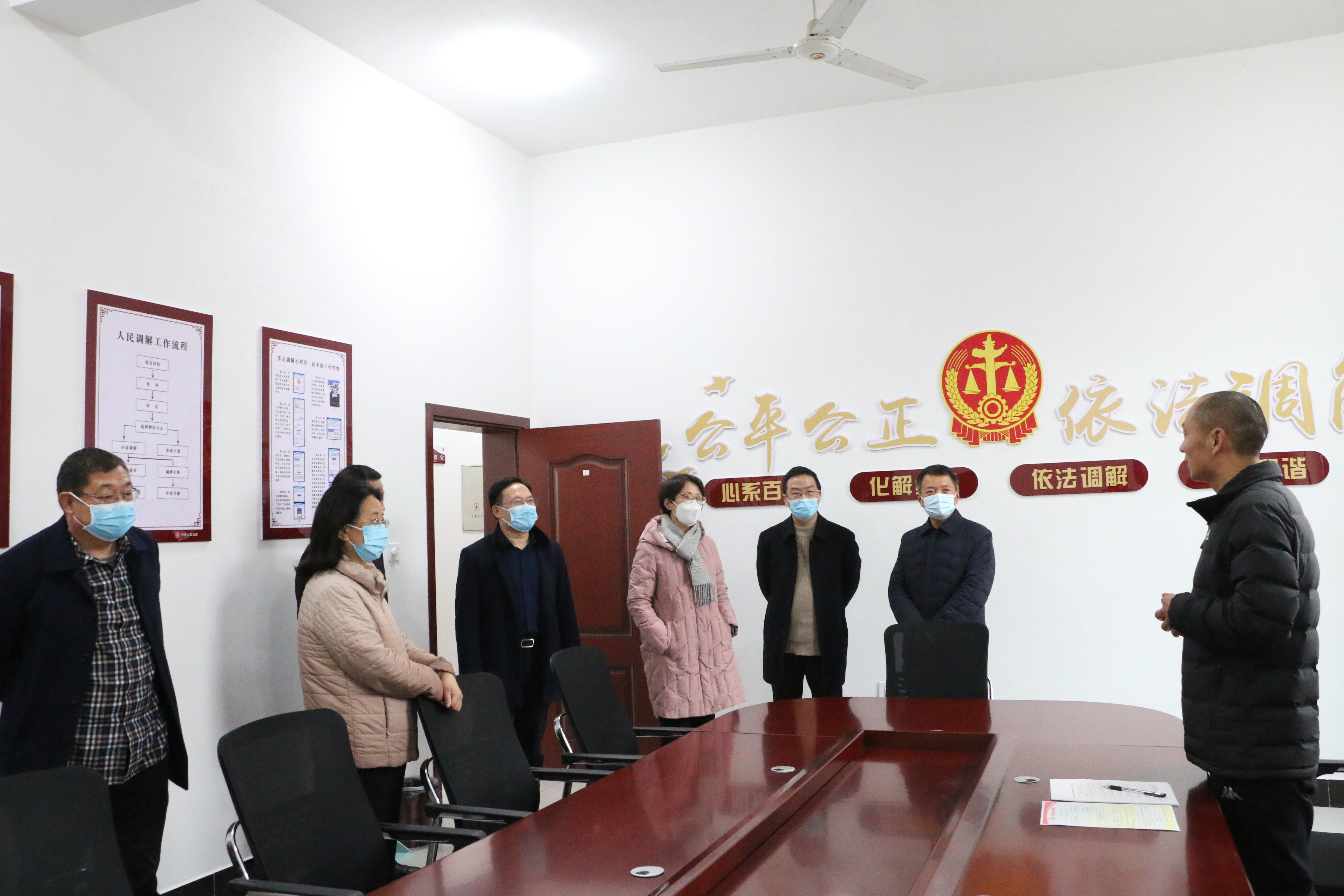 1月5日,河南省高级人民法院民一庭庭长高海娟、法官吕强等一行到沈丘法院付井人民法庭调研督导“枫桥式人民法庭”创建工作。周口中院党组成员、副院长刘俊荣,民二庭庭长李水安,沈丘法院党组书记、院长杨睿,付井镇党委书记赵斌等陪同调研并参加座谈。