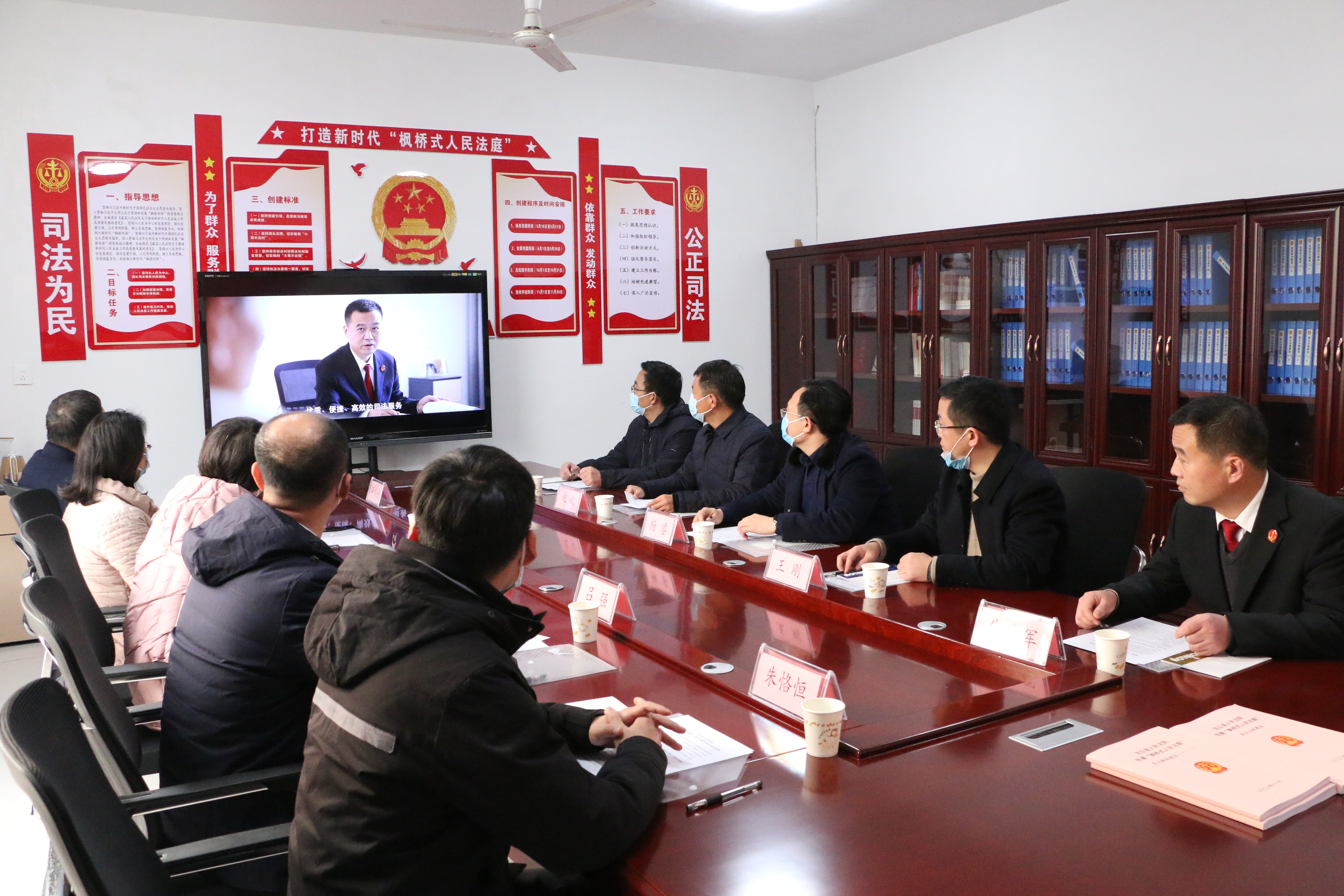 高海娟庭长强调:要全面总结“枫桥式人民法庭”创建工作中取得的经验成绩,挖掘亮点,培树典型,加大宣传;要强化竞争意识,充分发挥人民法庭司法便民的地理优势和职能优势,加强与辖区乡镇党委、政府的沟通联系,形成创建工作合力,进一步深化诉源治理,打造多元解纷工作大格局;要充分发挥基层法庭联系群众最直接、化解矛盾最便捷的优势,积极参与基层社会治理,助力乡村振兴,力促社会和谐稳定。