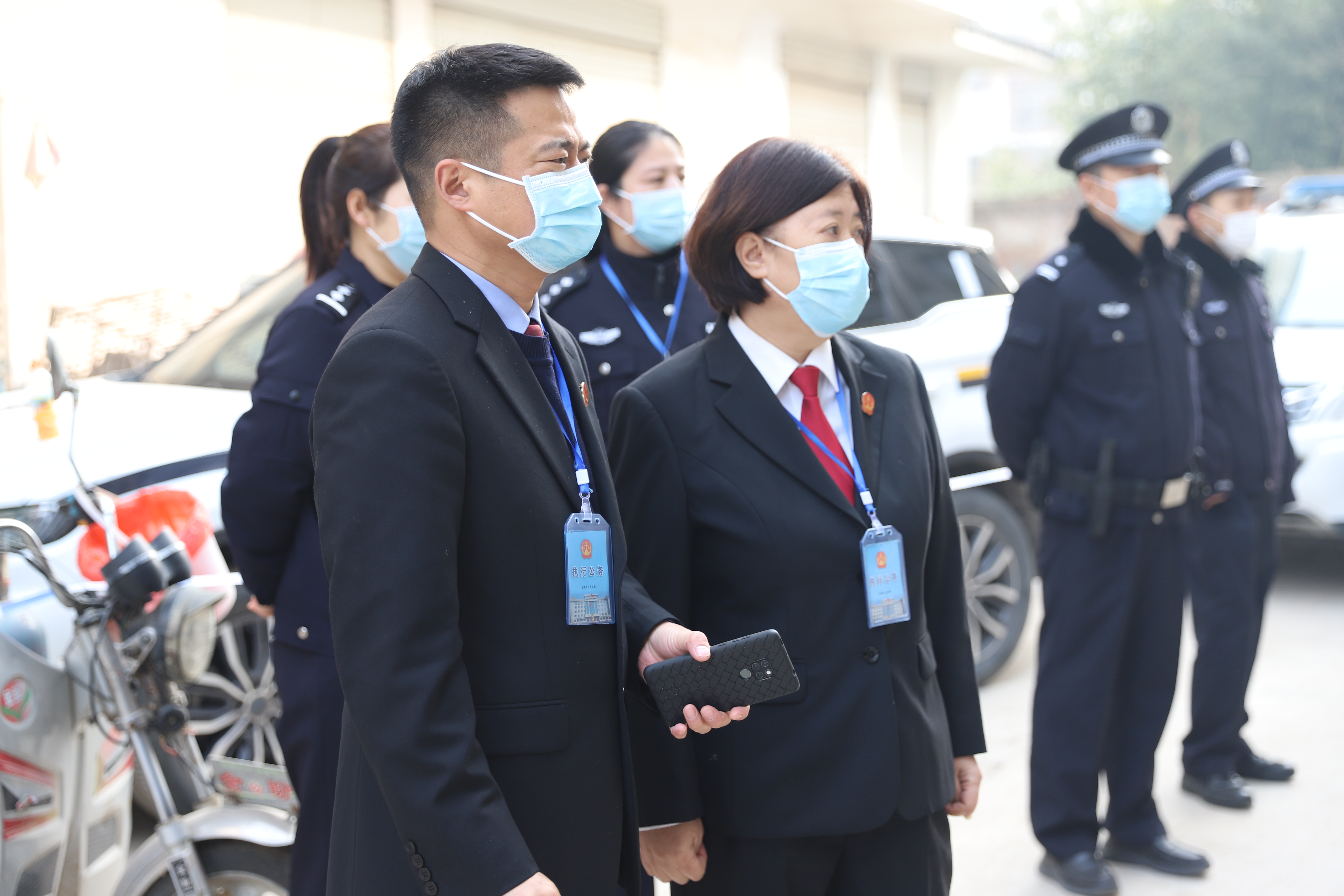 2月7日,早上7:30,永城法院办公楼前警灯闪烁,执行干警整装集合。